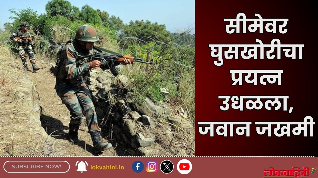 जम्मू(Jammu) 23 जुलै:- जम्मू-काश्मीरच्या पुंछ जिल्ह्यात आज, मंगळवारी पहाटे सैन्याने नियंत्रण रेषेजवळ दहशतवाद्यांचा घुसखोरीचा प्रयत्न उधळून लावला. यावेळी झालेल्या चकमकीत लष्कराचा एक जवान जखमी झाला आहे. यासंदर्भात माहिती देताना व्हाईट नाइट कॉर्प्सने सांगितले की सतर्क सैन्याने पहाटे 3 वाजता बटाल सेक्टरमध्ये घुसखोरी करणाऱ्या दहशतवाद्यांवर प्रभावीपणे गोळीबार करून घुसखोरीचा प्रयत्न हाणून पाडला.