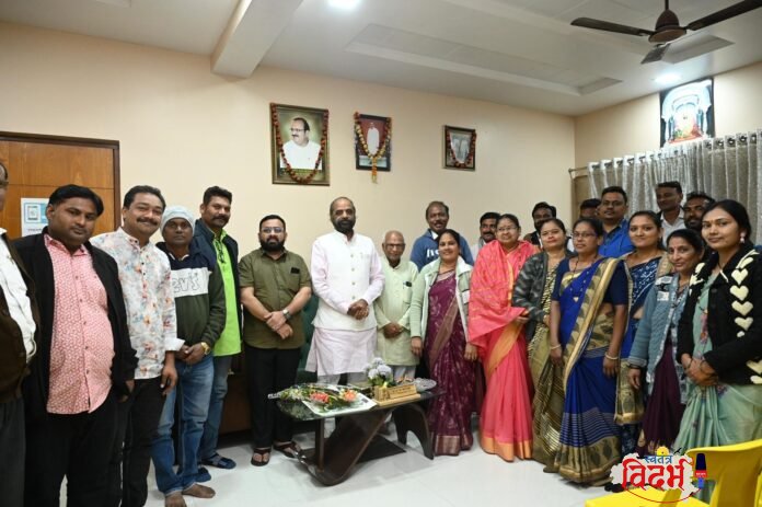 सार्वत्रिक निवडणूक २०२५ अंतर्गत वरोरा नगरपरिषद निवडणुकीत भारतीय जनता पार्टीने दणदणीत आणि ऐतिहासिक विजय मिळवत शहराच्या राजकारणावर आपले वर्चस्व अधोरेखित केले आहे. या विजयाच्या पार्श्वभूमीवर भाजपचे सर्व विजयी नगरसेवक व नगरसेविकांचा पूर्व राष्ट्रीय मागासवर्गीय आयोगाचे अध्यक्ष तथा माजी केंद्रीय गृहराज्यमंत्री मा. श्री. हंसराजजी भैय्या अहीर आणि आमदार मा. श्री. करण देवतळे यांच्या शुभहस्ते भव्य स्वागत-सत्कार करण्यात आला.