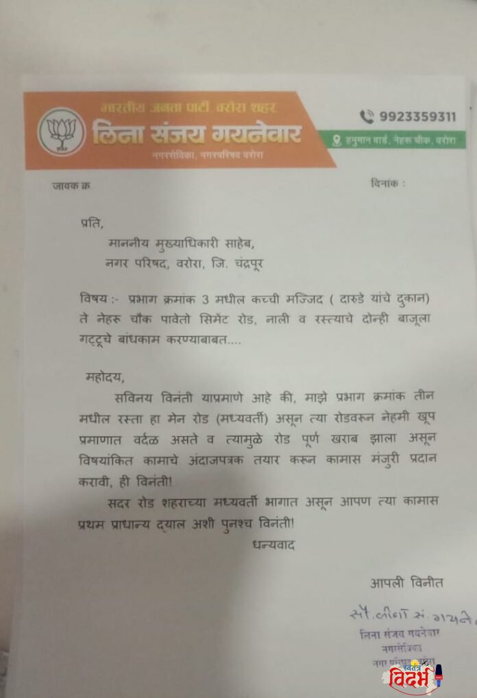 рдпрд╛ рдЧрдВрднреАрд░ рд╕реНрдерд┐рддреАрдмрд╛рдмрдд рдирдЧрд░рд╕реЗрд╡рд┐рдХрд╛ рд▓рд┐рдирд╛ рд╕рдВрдЬрдп рдЧрдпреЗрдирд╡рд╛рд░ рдпрд╛рдВрдиреА рдереЗрдЯ рдореБрдЦреНрдпрд╛рдзрд┐рдХрд╛рд▒реНрдпрд╛рдВрдХрдбреЗ рдирд┐рд╡реЗрджрди рджреЗрдд, рдЕрдВрджрд╛рдЬрдкрддреНрд░рдХ рддрдпрд╛рд░ рдХрд░реВрди рддрд╛рддрдбреАрдиреЗ рдХрд╛рдорд╛рд╕ рдордВрдЬреБрд░реА рджреЗрдгреНрдпрд╛рдЪреА рдорд╛рдЧрдгреА рдХреЗрд▓реА рдЖрд╣реЗ. тАЬрд╣рд╛ рдорд╛рд░реНрдЧ рд╢рд╣рд░рд╛рдЪреНрдпрд╛ рдордзреНрдпрд╡рд░реНрддреА рднрд╛рдЧрд╛рдд рдЕрд╕рд▓реНрдпрд╛рдиреЗ рдпрд╛ рдХрд╛рдорд╛рд▓рд╛ рдкреНрд░рдердо рдкреНрд░рд╛рдзрд╛рдиреНрдп рджреЗрдгреНрдпрд╛рдд рдпрд╛рд╡реЗ,тАЭ рдЕрд╢реА рдХрдбрдХ рдорд╛рдЧрдгреА рддреНрдпрд╛рдВрдиреА рдХреЗрд▓реА рдЖрд╣реЗ.