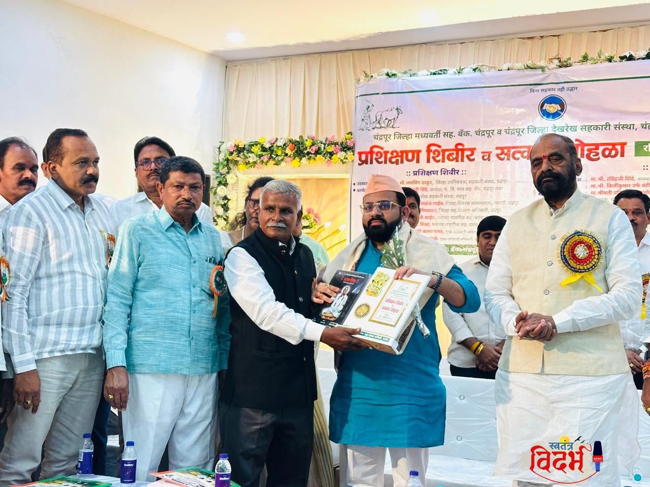 चंद्रपूर जिल्हा मध्यवर्ती सहकारी बँक, चंद्रपूर तसेच चंद्रपूर जिल्हा देखरेख सहकारी संस्था, चंद्रपूर यांच्या संयुक्त विद्यमाने आयोजित प्रशिक्षण शिबीर व सत्कार सोहळा वरोरा येथील स्व. दादासाहेब देवतळे सभागृह (शेतकरी भवन) येथे मोठ्या उत्साहात पार पडला.