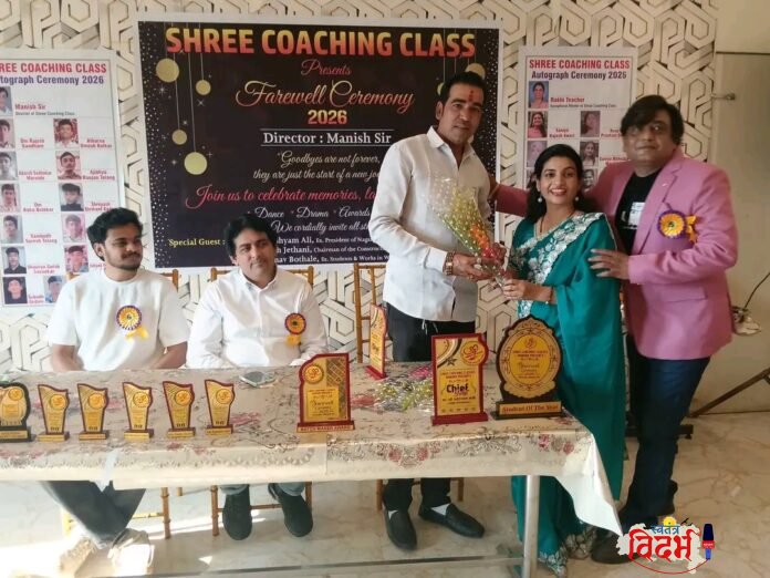 येथील प्रतिष्ठित ‘श्री. कोचिंग क्लासेस’ तर्फे विद्यार्थ्यांसाठी नुकताच एका दिमाखदार ‘फेअरवेल सिरिमानी’ (निरोप समारंभ) चे आयोजन करण्यात आले होते. अभ्यासाच्या व्यापातून विरंगुळा आणि विद्यार्थ्यांच्या सुप्त कलागुणांना वाव देण्याच्या उद्देशाने आयोजित या कार्यक्रमात विद्यार्थ्यांनी विविध सादरीकरणातून उपस्थितांची मने जिंकली.